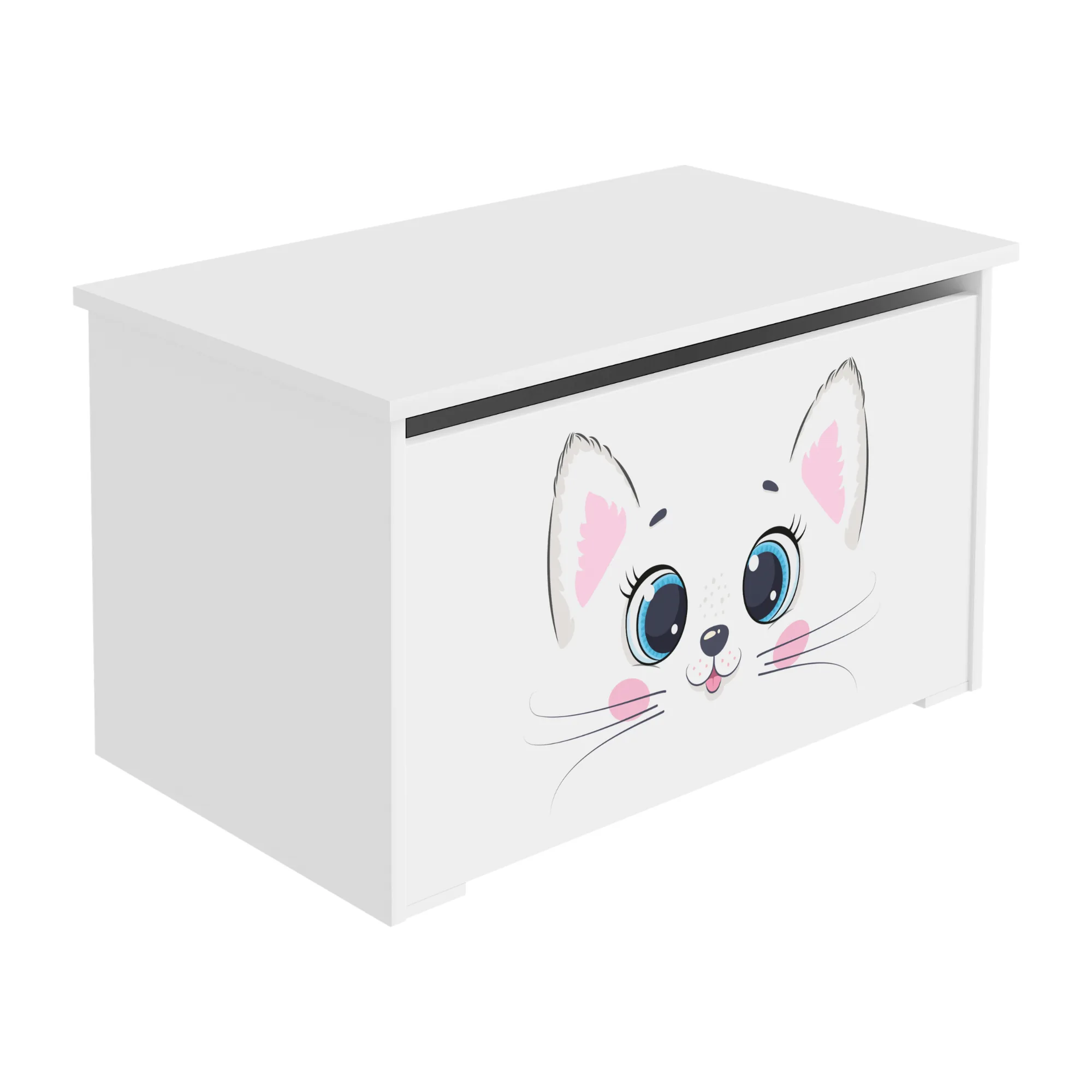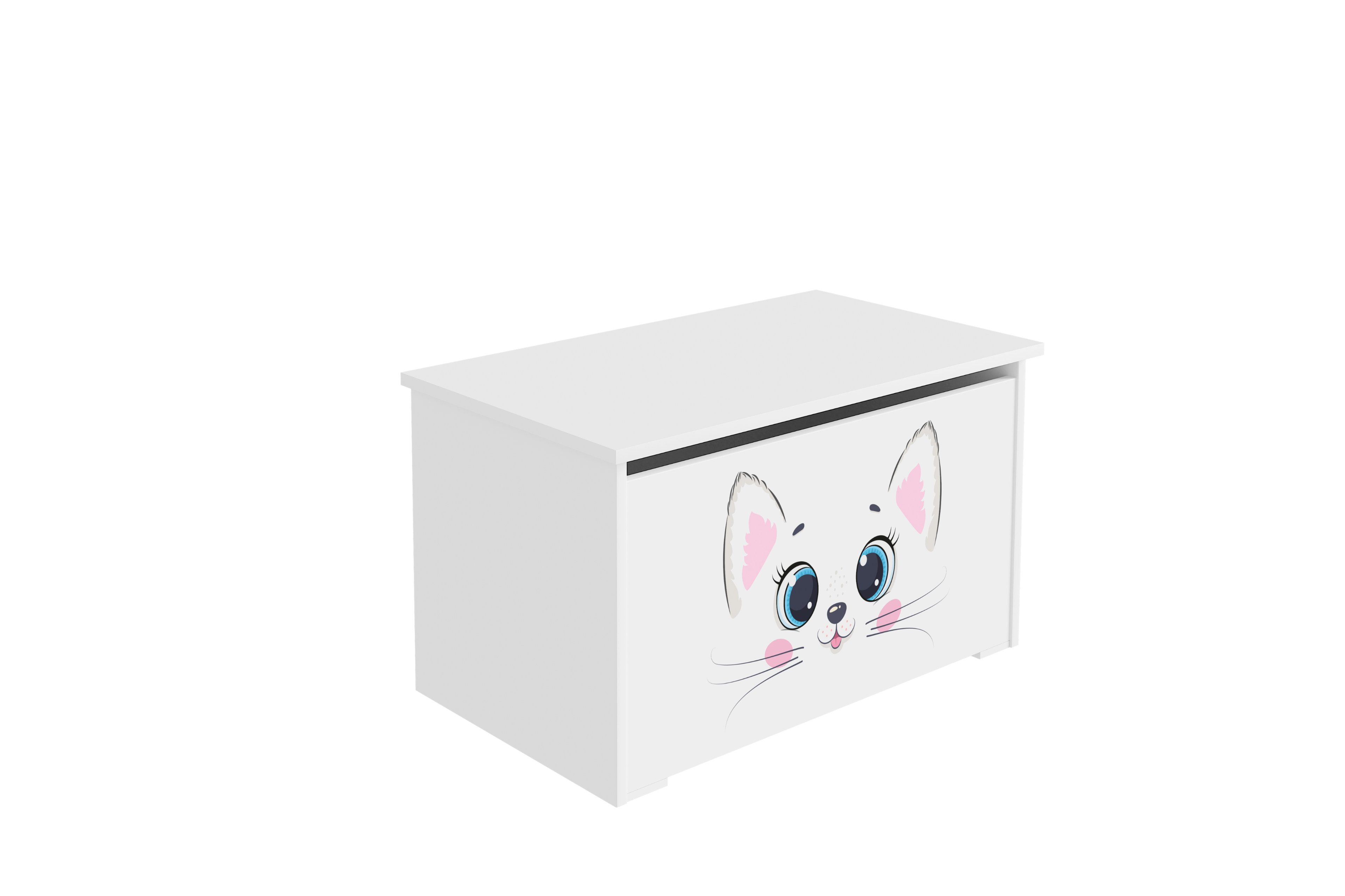 Skrzynia na zabawki Daria biała z nadrukiem Pink Cat