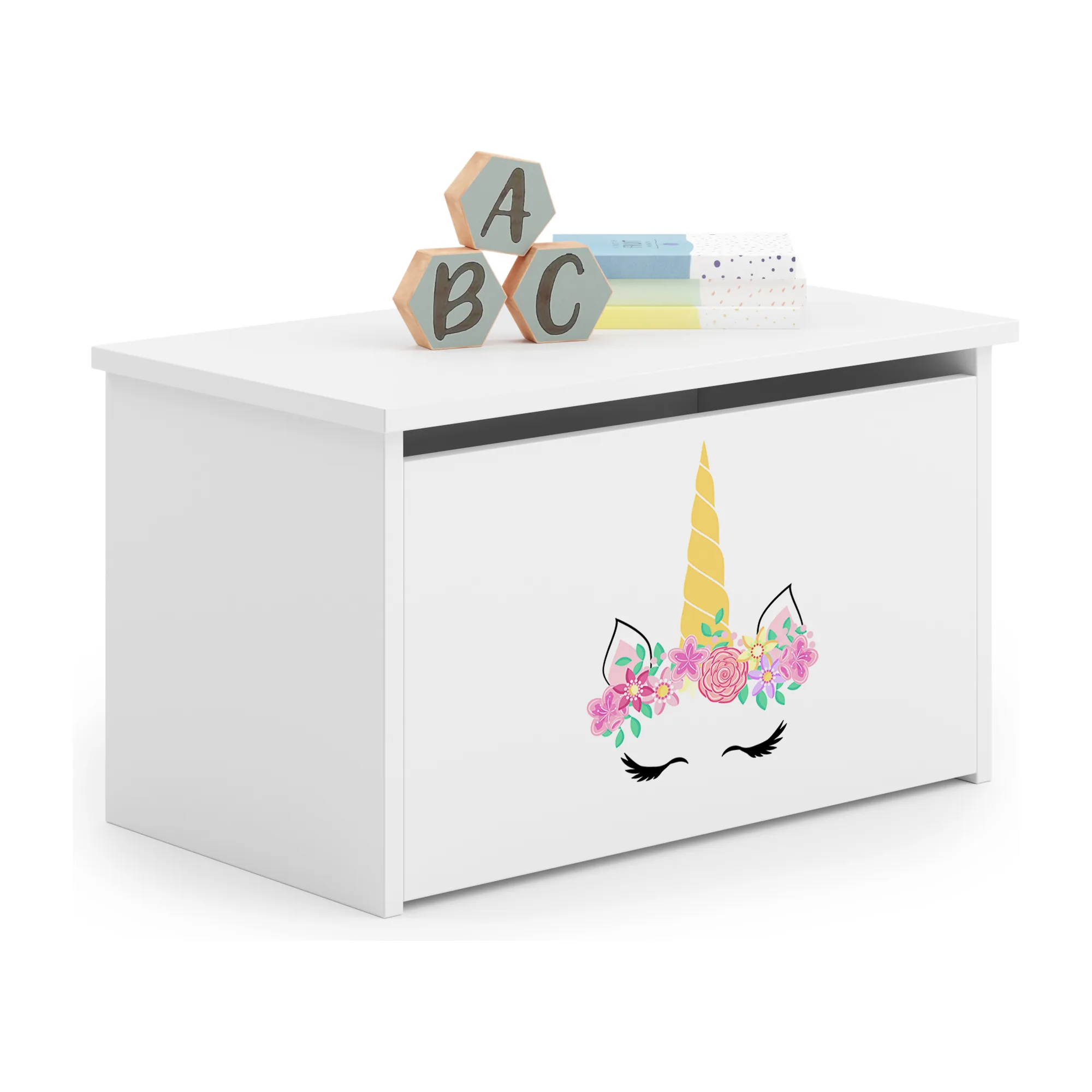 Skrzynia na zabawki Daria biała z nadrukiem Róg jednorożca