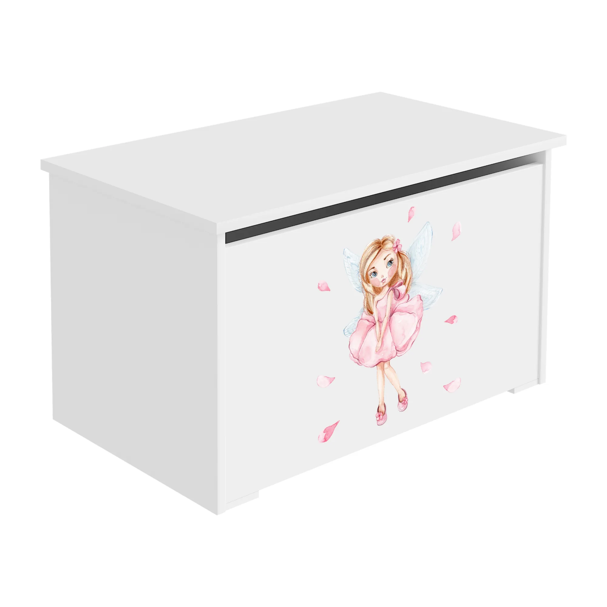 Skrzynia na zabawki Daria biała z nadrukiem Dziewczynka ze s