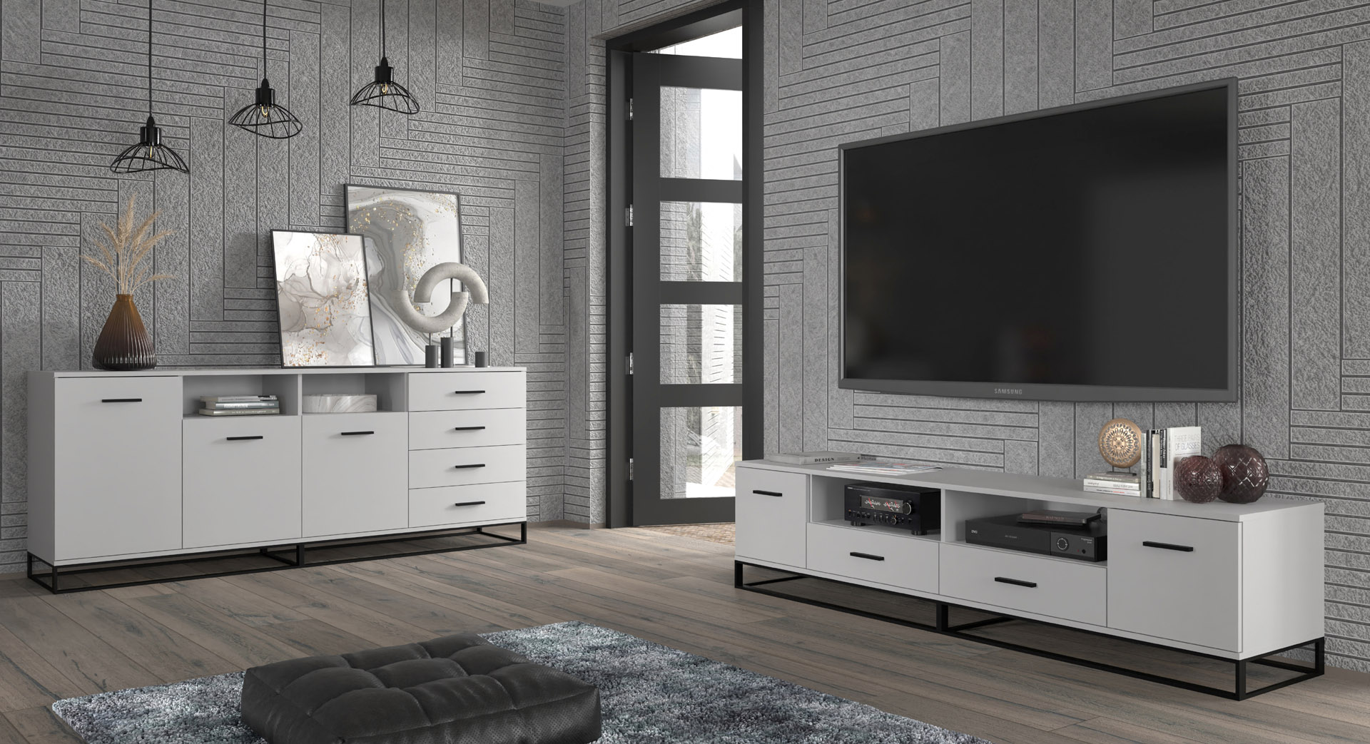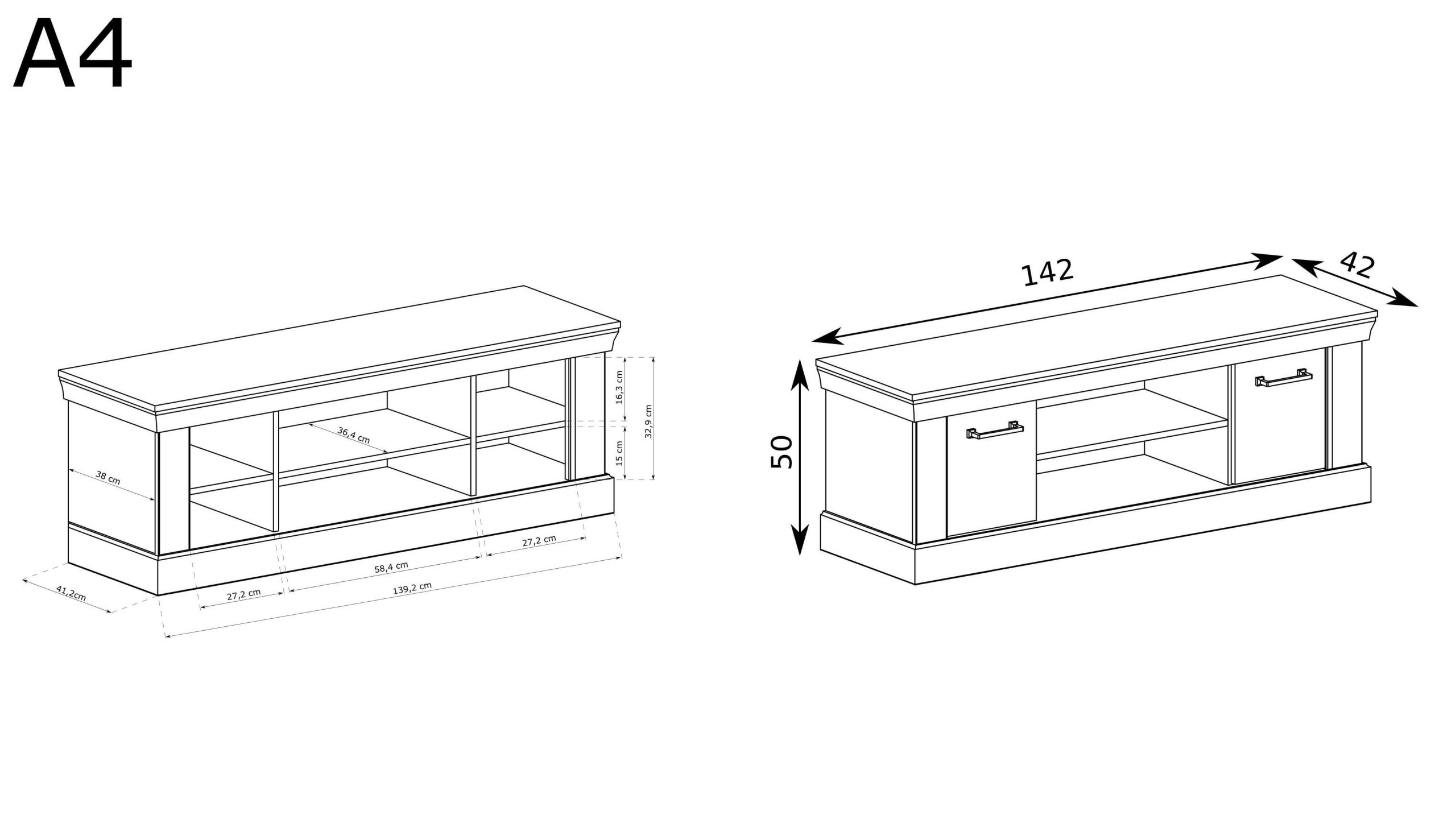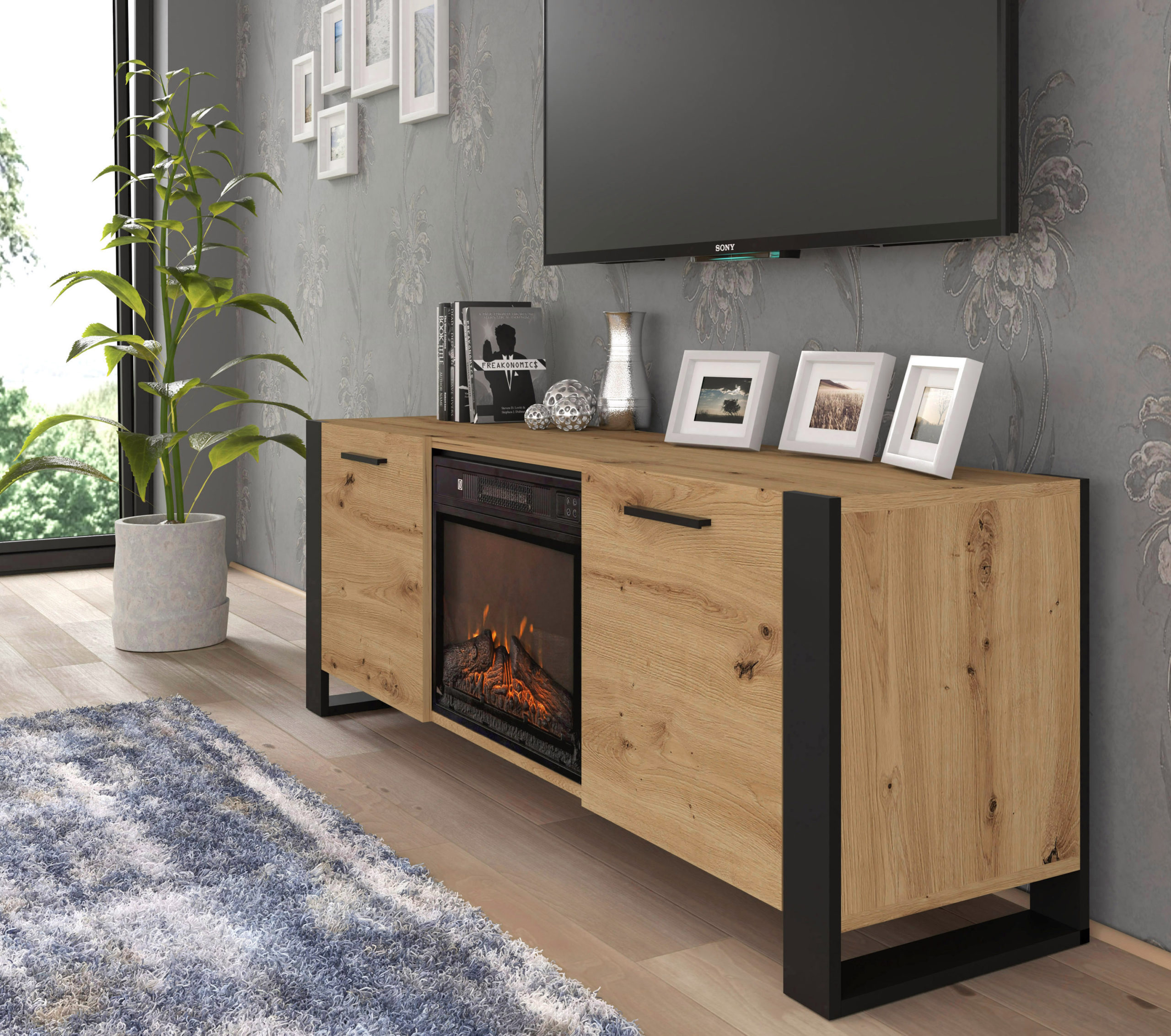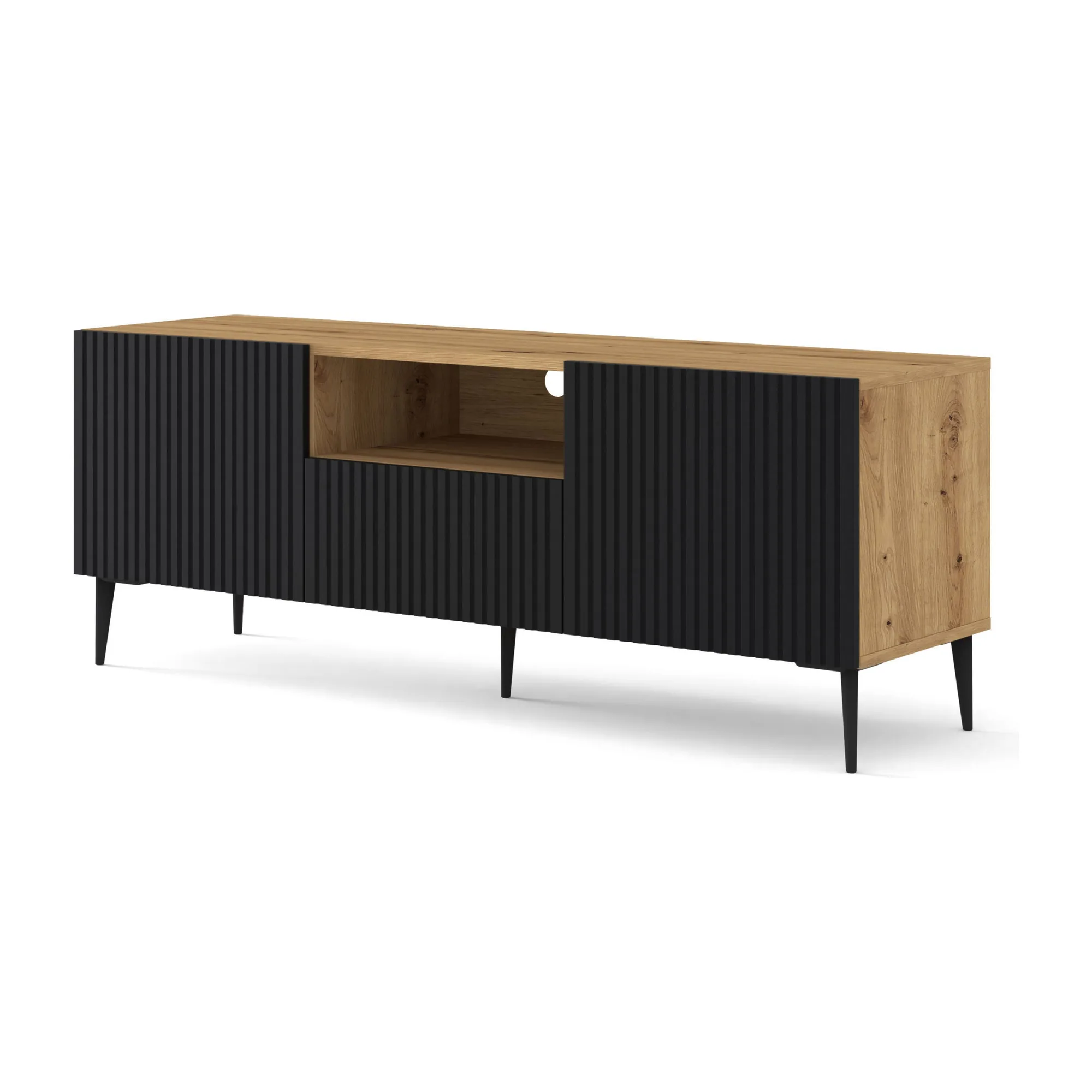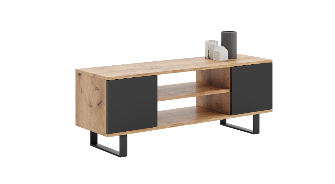 Szafka RTV 135 cm loft dąb craft złoty - czarny